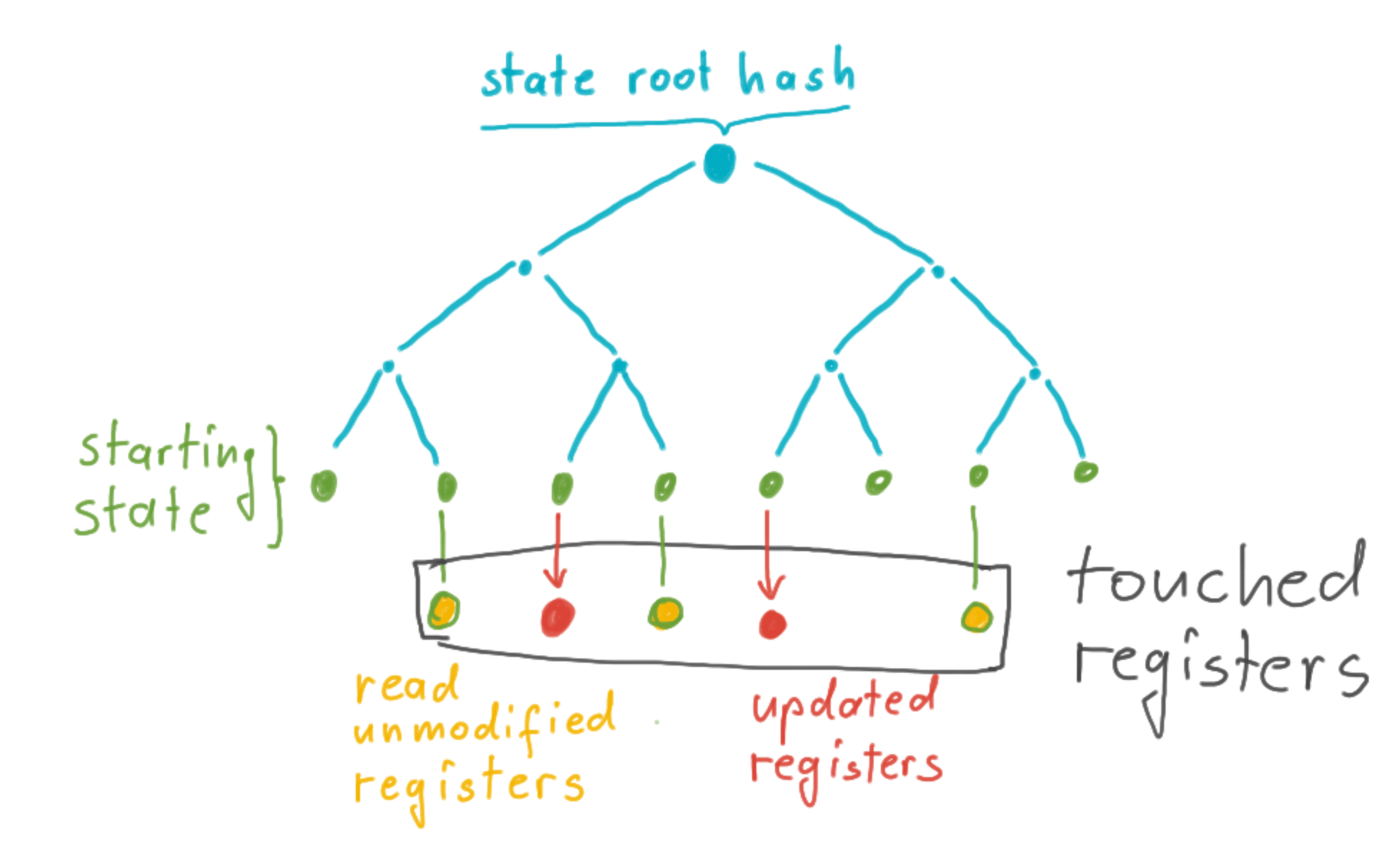 - 在目前的形式下,块数据包列出了所有被触及的寄存器,但并没有区分读取未修改寄存器和更新寄存器。不过,在块数据包中,我们可以很容易地将更新的寄存器与只读的寄存器区分开来。这样还可以减少观察者/存档节点的网络负荷,因为它们可以有选择性地只下载更新的寄存器。