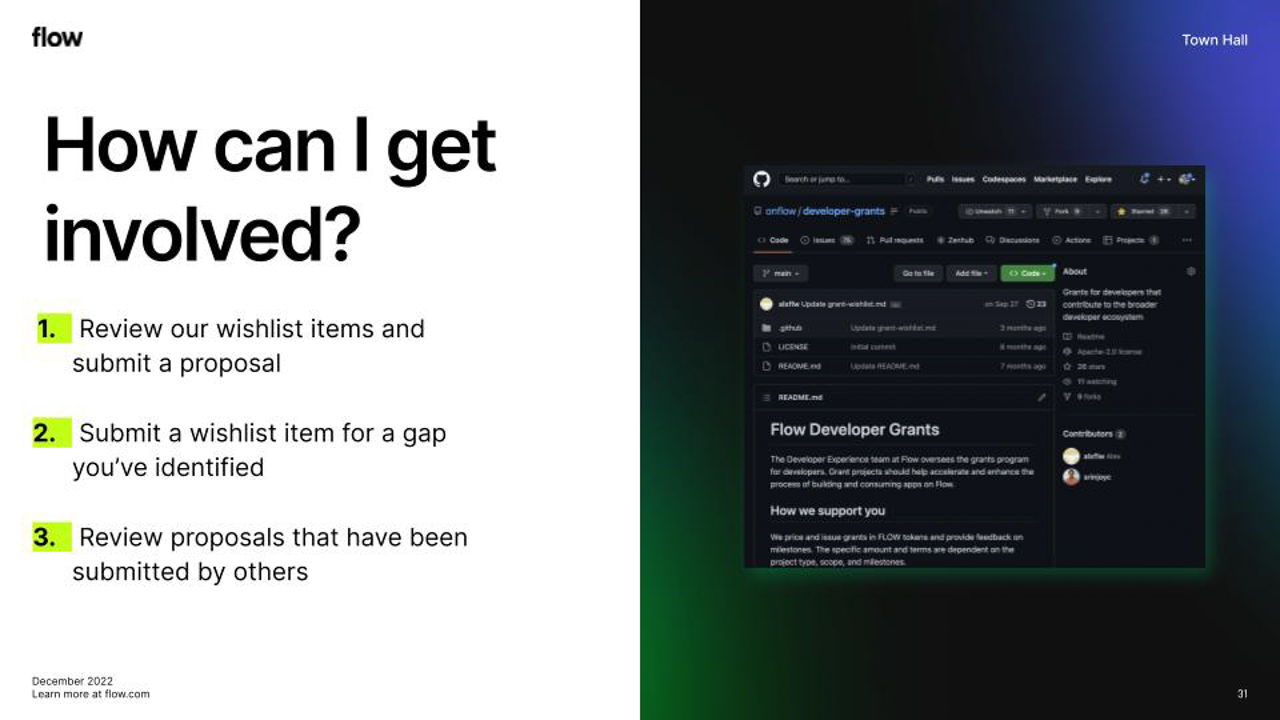 在2022年,我们引入了开发者资助。补助金帮助开发者在他们新的勇敢的想法上工作,并为开源生态系统作出贡献。我们收到了90份资助提案,接受了35份资助提案,批准完成了69个里程碑,向受资助者支付了67.7万美元的FLOW代币。要想仔细了解2022年之前Flow的开发者资助,请查看本博客的进一步细节。