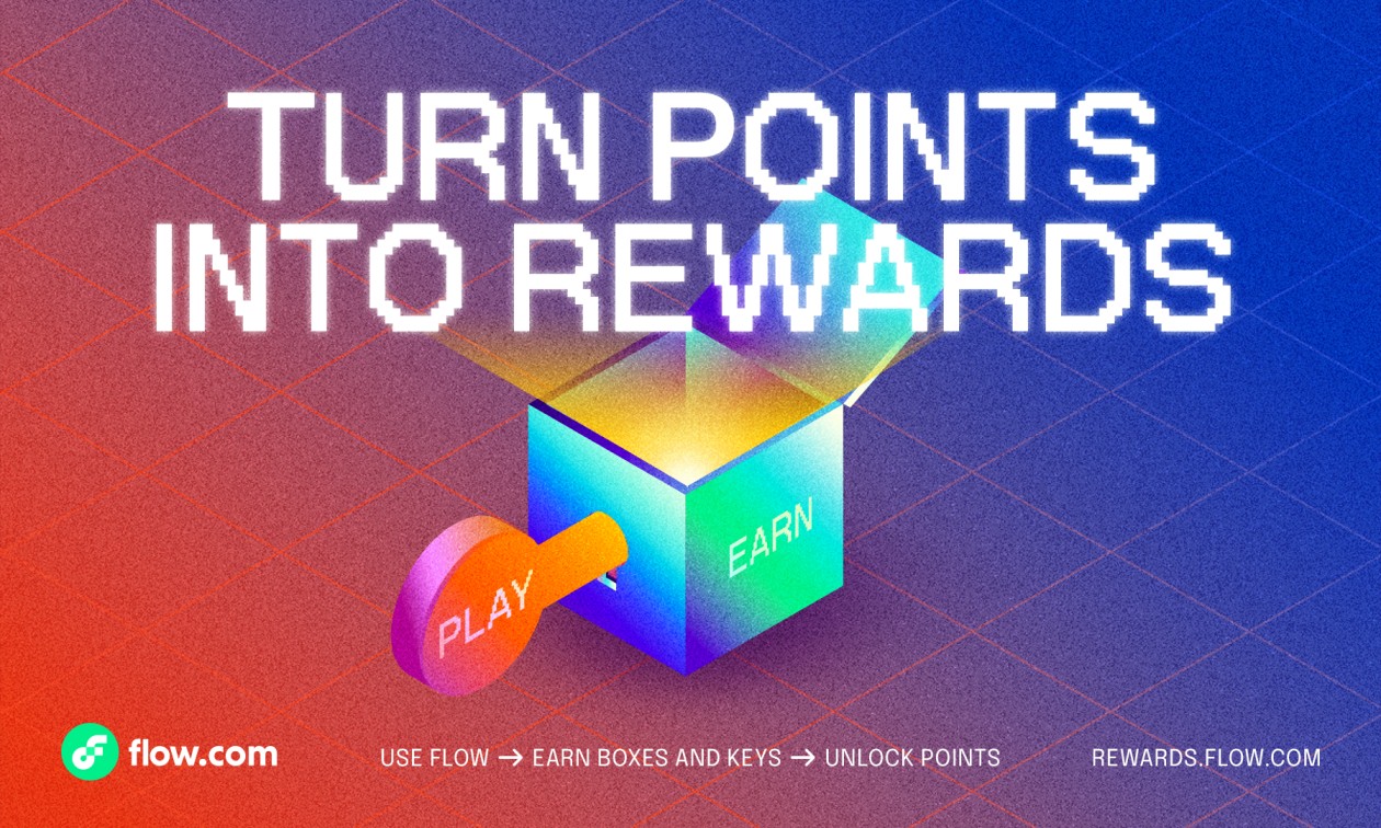 With Flow Rewards, people earn Boxes (for engaging with certain apps) and Keys (for engaging with other apps). Starting on Wednesday, October 16th, boxes and keys can be combined into Points for Rewards like experiences, real-life items, and onchain items.